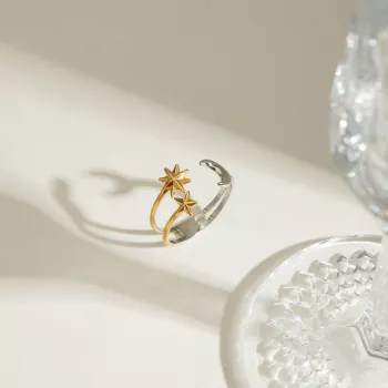 18K Gold-Plated Star and Moon Open Ring - Stylish Waterproof Jewelry