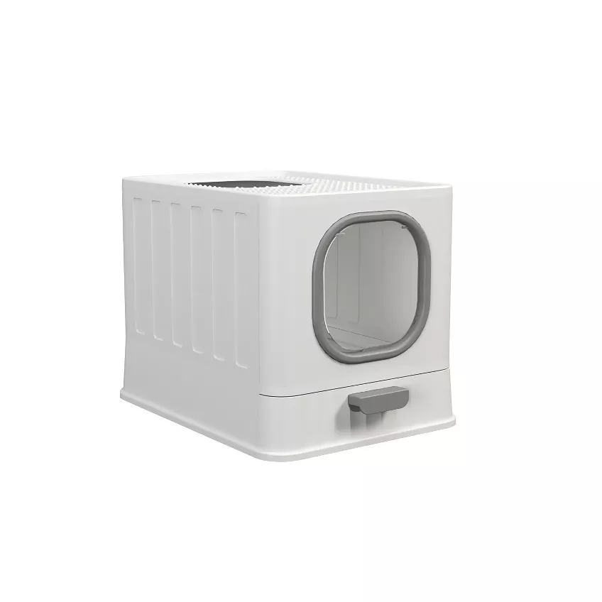 Covered Cat Litter Box with Top and Front Entry, Drawer Tray and Scoop