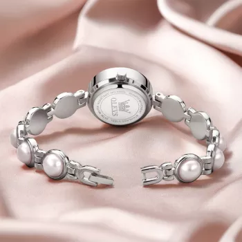 Diamond Luxury Women's Quartz Dress Watch with Pearl Bracelet